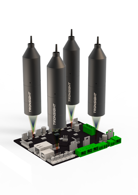 TS-C系列光谱共焦位移传感器系列测量不受目标物材质及颜色影响,可用来测量IC芯片组装时的平行度和浮脚。防止接触不良以及配件剥离等情况的产生。
