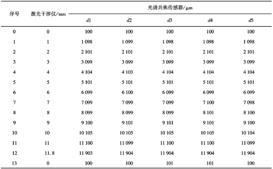 表2 激光干涉仪对光谱共焦传感器校准的数据