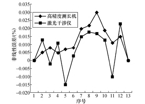 由计算出的非线性误差,可知,尽管校准时所用的标准器不同,但是,通过数据处理之后,其非线性误差基本不变。