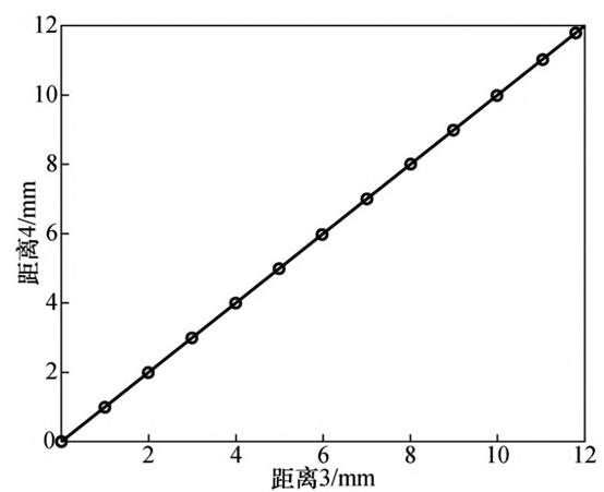 利用matlab对数据进行模拟仿真,结果见图4、图5所示,其中图4与图5的X轴数据分别为高精度测长机与激光干涉仪的示值,Y轴为光谱共焦传感器的示值。