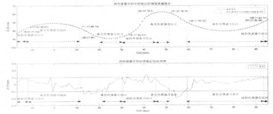 图6 两传感器可信区拼接后的测量数据及测量误差图
