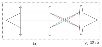 图1. 定量逆色散物镜的设计原理(a)色散模型,(b)色散物镜