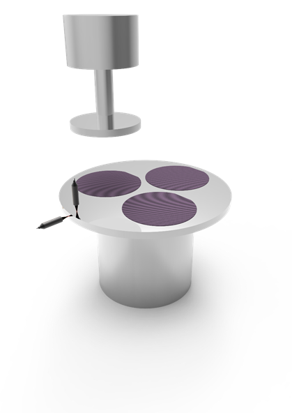 在旋转基座时采用非接触测量的方法,可以避免接触式传感器的压力而引起涂层的缺陷,用于测量基座的摆动及离心率。