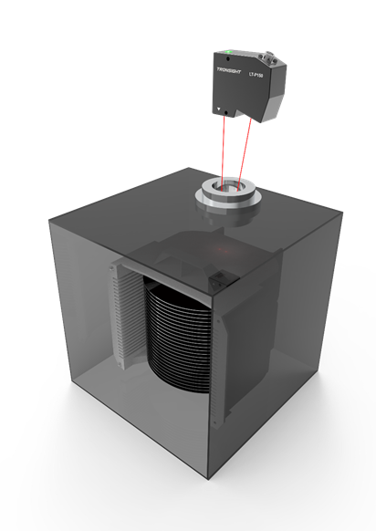 使用精密位移传感器TS-LTP系列激光位移传感器的超长距离型号,可以测量1m以外的位置,透过视口高精度地测量晶圆的高度及倾斜等状态。