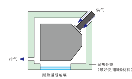 位移传感器用气洗方式隔热。测量仪周边温度较规定环境温度略高时,可仅通过空气吹拂的方法将温度降至规定环境温度以下。