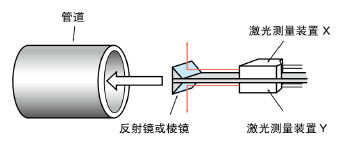 测量管的内径时,如图所示,可以用反射镜弯曲光轴来进行,通过计算X+Y,可以求出内径。
