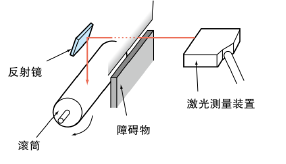 测量受障碍物影响的目标物时,如图所示,可以用反射镜反射光轴,测量滚筒的离心率。