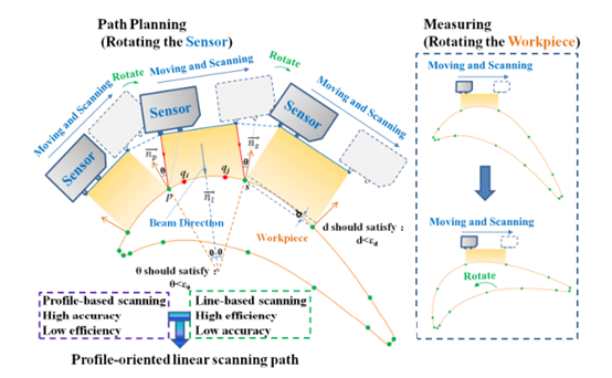 来自南京航空航天大学机电工程学院的DaweiDing等人提出了一种LTOMM误差模型和一种在设定精度约束下提高效率的路径规划方法。利用生成的路径,采用三坐标测量机(CMM)、OMM探头和LTOMM对自由曲面涡轮叶片进行检测,以评估各自的精度和效率。文章题为“Error Modeling and Path Planning for Freeform Surfaces by LaserTriangulation On-Machine Measurement”发表在“IEEETransactions on Instrumentation and Measurement”杂志。
