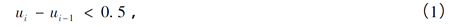 由于受自身因素和环境因素等影响,传感器L3、L4同时探测得到的数据点中存在一定的干扰点,因此,要对采集到的数据进行干扰点的滤除。首先,根据采集到的数据建立(U-200,U)的滤窗。其中,U为采集到的踏面内端面的起始点横坐标,滤除横坐标不在该范围内的点,然后提取满足式(1)的数据点,即:
