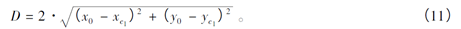 式中,(x0,y0)为滚动圆的圆心坐标,则车轮滚动圆的直径D为:
