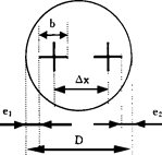D=Δx+ b+e1+e2 (2)