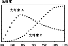 另外,对强度型光纤位移传感器来说,其灵敏度较高的区段很窄(一般不超过300μm),为了同时实现对内螺纹大小径的自动扫描测量,必须想办法扩大其灵敏区段。本文采用图6中给出的传感头结构,当测量小径时,取光纤束A中所接收的信号;而测大径时,取光纤束B中接收的信号,从而达到扩大量程的目的。两束接收光纤的位移—光强关系曲线如图7所示。
