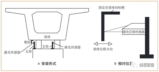 (2)从各条线路加装监控系统实践看,国外主要品牌激光位移传感器质量相近,选择重点是根据监测对象的变形范围选择传感器型号和量程。例如,梁体横向位移宜采用小量程传感器,梁体纵向位移宜采用大量程传感器,梁体微裂缝应采用微小量程传感器。
