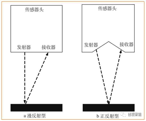 正反射型传感器入射角在0~90°之间,其特点是可以有效接收被测物体的反射光,能对光滑表面进行有效测量。与漫反射型相比,其分辨率和精度更高,但测量范围变小,且体积增大。