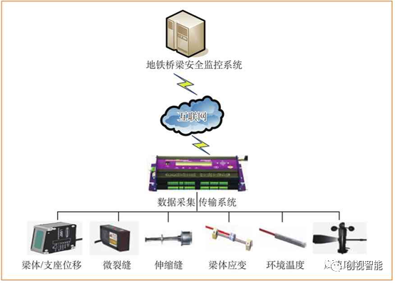 北京地铁建设有桥梁设施安全监控系统平台及专用机房,统一管理全路网桥梁设施安全。各条线路桥梁安装的传感器通过图4的DataTaker数据采集和传输系统,直接将监测数据无线传输至机房系统平台,进行分析、处理、展示和存储。