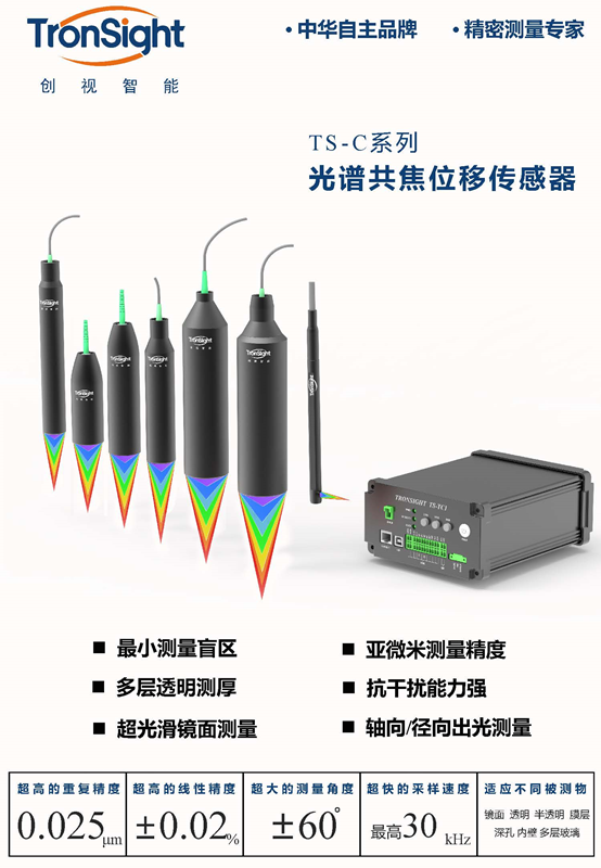 TS-C系列光谱共焦位移传感器系列具备同轴高精度测量的特点,即使在狭窄空间,也不会产生光路干涉,能够准确测量手机结构件中胶粘剂的涂胶量