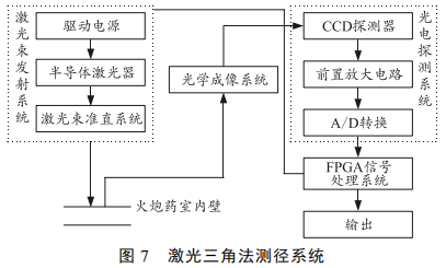 药室直径利用激光三角法进行测量,主要由激光发射、光电成像、光电探测等组成,具体 如图7。