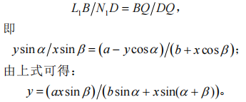 分别从 L1 和 N1 向反射光 L0N0 做垂线,得到交点 B 和 D,然后再根据三角形相似原理,可以得到如下关系: